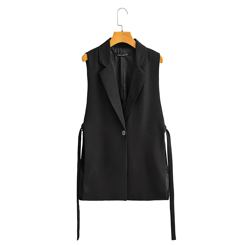 Elevate your style this autumn with our stunning European and American style vest, designed to make a statement. Crafted with care, this versatile piece features a solid color design with chic lace-up decorations and a modern slit that adds an element of sophistication to any outfit.
